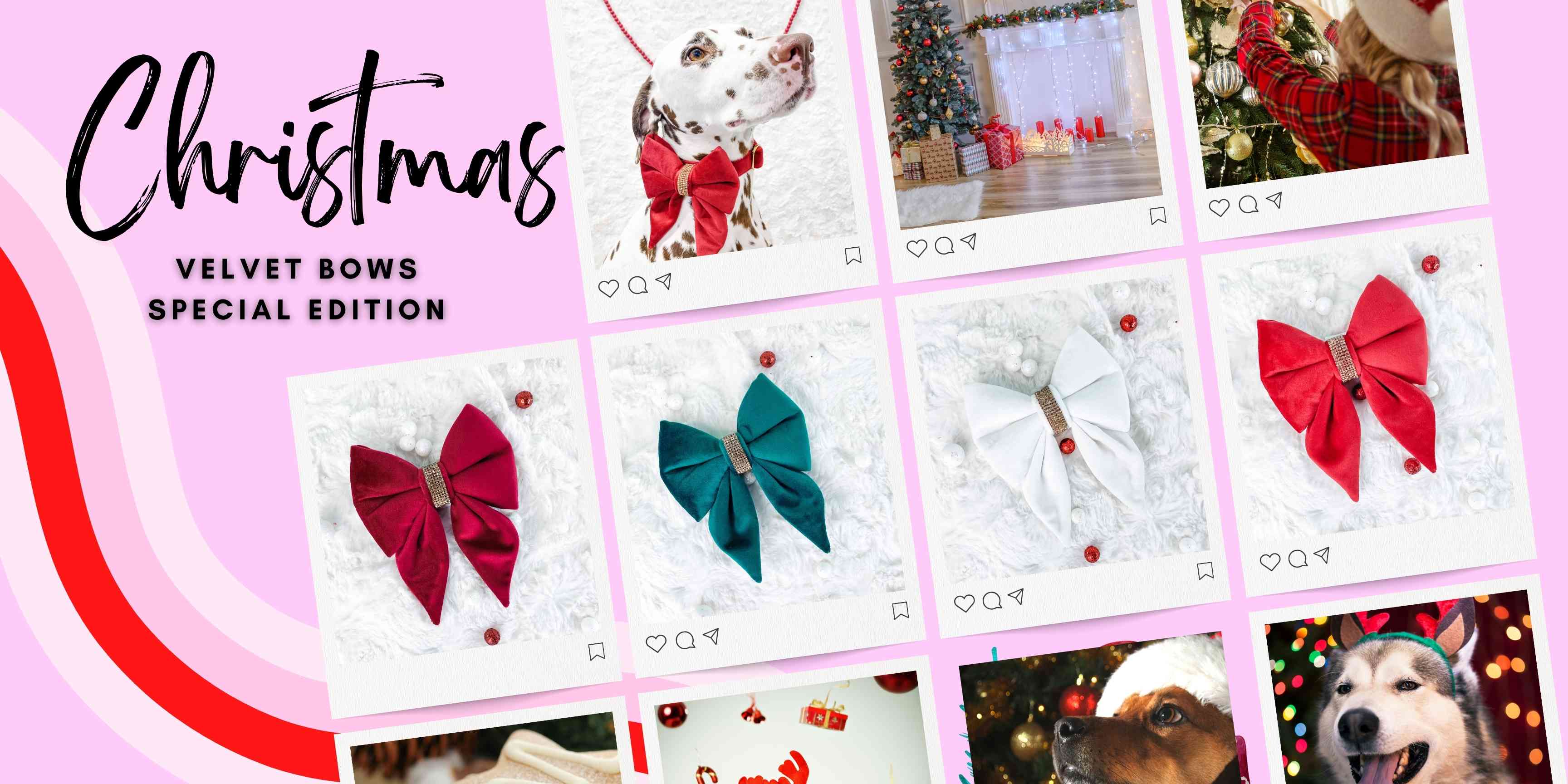 Choose from collars, leashes, bow ties, and sailor bows to create your pup’s perfect winter look.