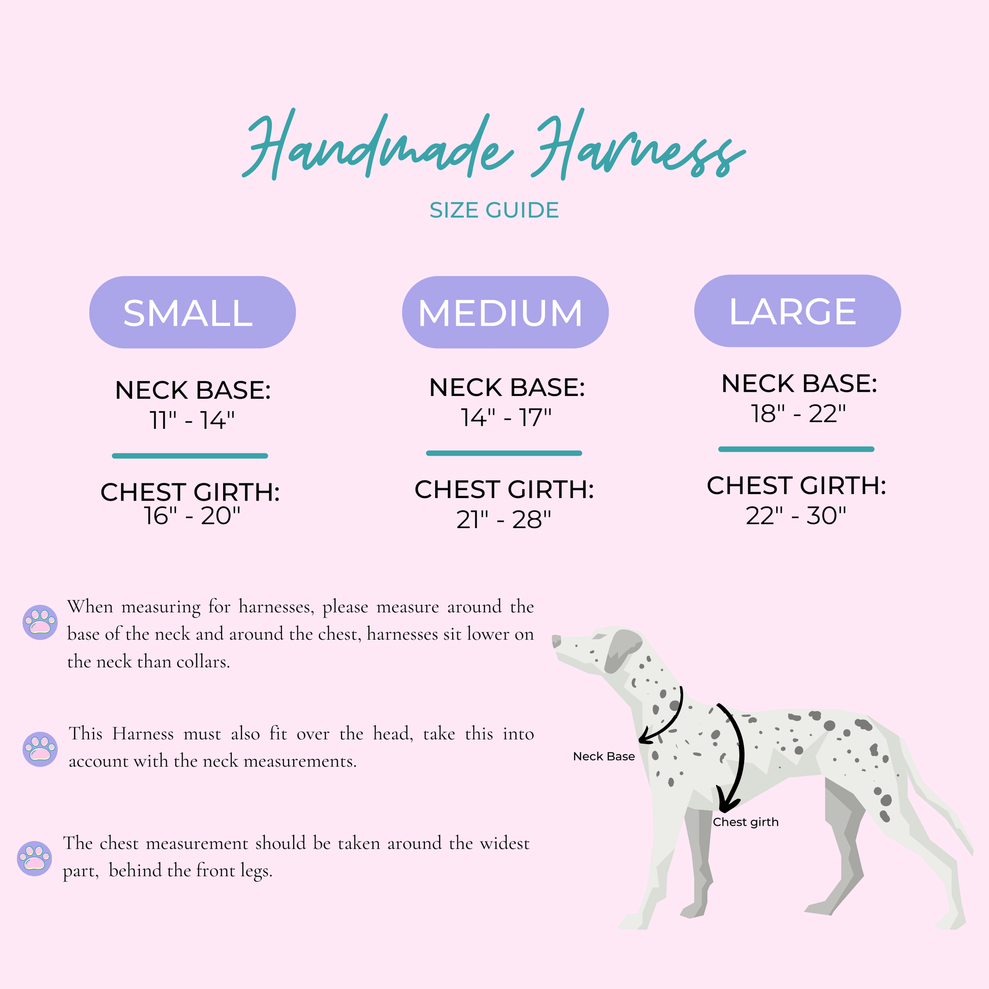 • PLEASE ALWAYS MEASURE YOUR PUPS NECK AND CHEST PRIOR TO PURCHASE, WE CAN NOT OFFER EXCHANGES ON HANDMADE TO ORDER ITEMS. If you need any help with sizing, a bigger or smaller size please feel free to contact us at hello@naughtypawsus.com